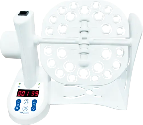 Adjustable-speed 3D rotating mixer for continuous mixing.